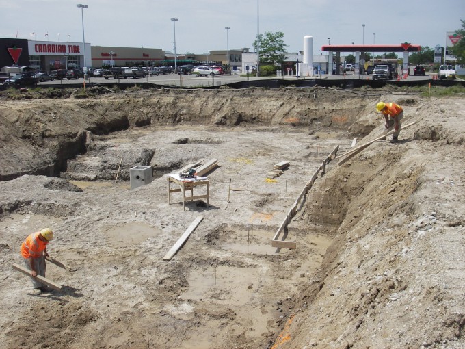 Forming the concrete foundation began today.