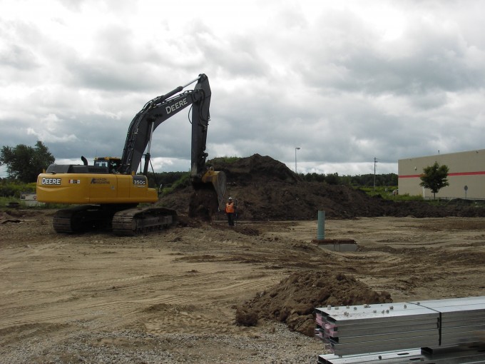 The foundation has now been back filled with stone and gravel. Excavation has begun to level and manipulate the earth for the future parking lot.