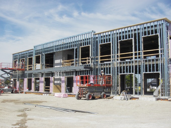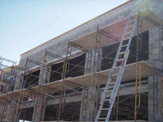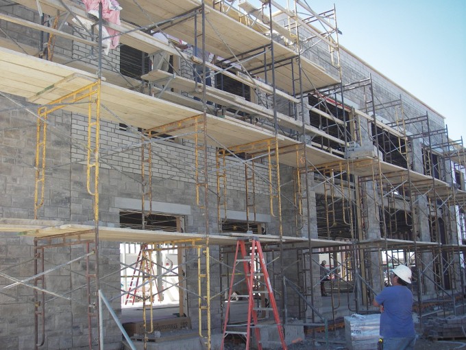 The lighter colour brick is starting to be laid on the North side. The contrast of stone and brick will look sharp when complete.