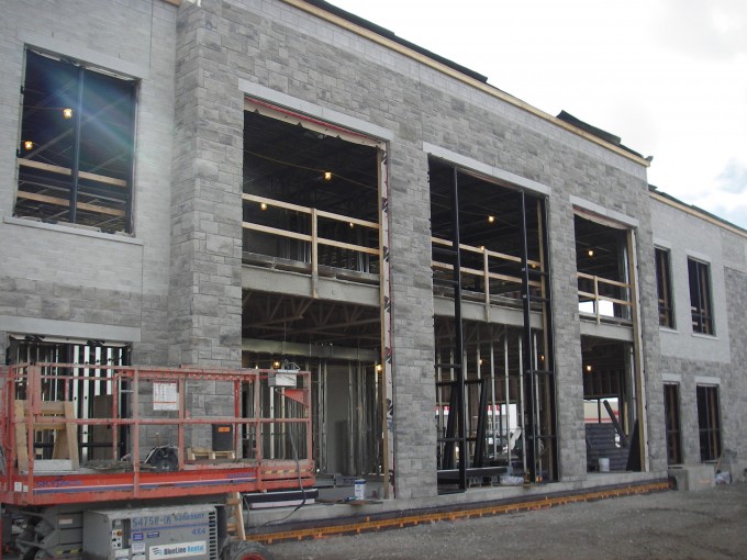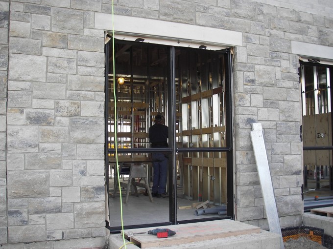 The dark window frames accent the stone and brick really well.