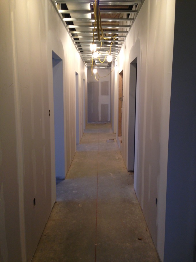 The mudding of dry wall has begun. The exterior of the building looks stunning and isn't even complete. Upstairs is heaven with SO many windows. :)