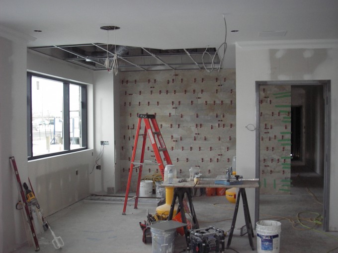 Painting has started in the Board Room, Consult Room and Staff Area. The Waiting Room looks fantastic with the tile complete behind the front deska area.